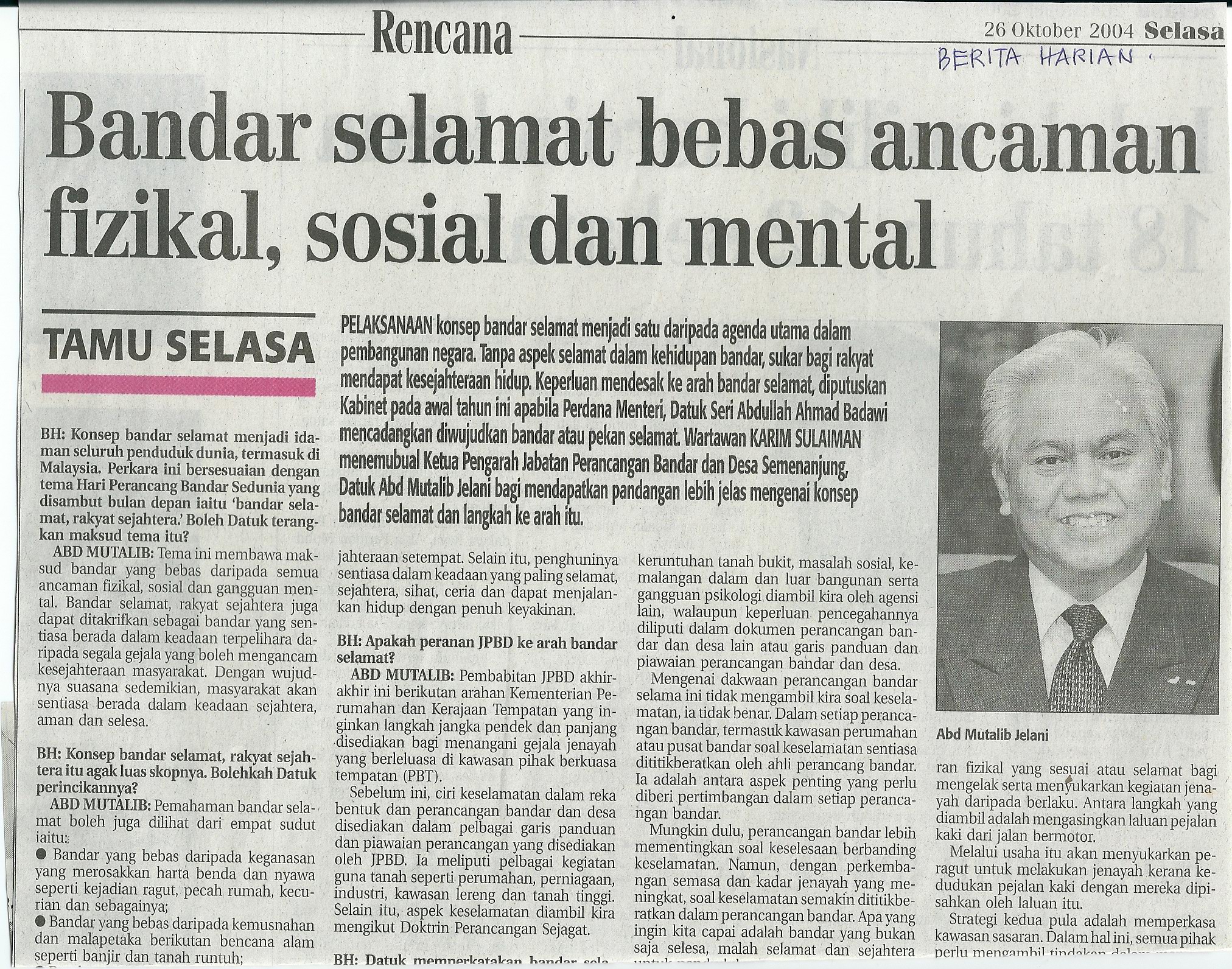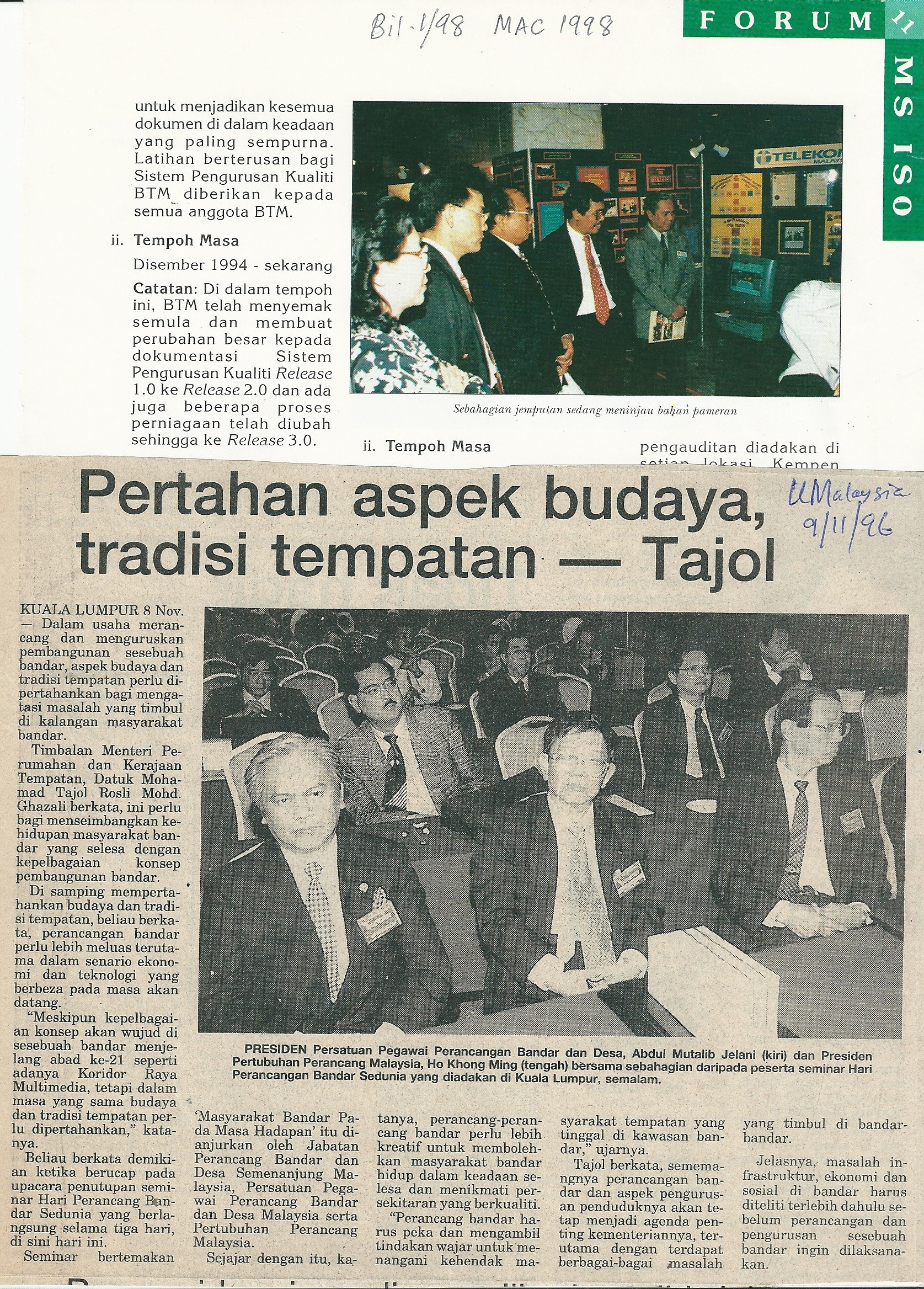 1. The Total Planning Doctrine - Malaysian Physical Planning System; Seminar on "Environment and Economic Policies Towards Sustainable Cities in APEC", anjuran APEC dan Kerajaan China;18 - 20.9.97; Beijing, China."The Malaysian Physical Planning System".